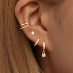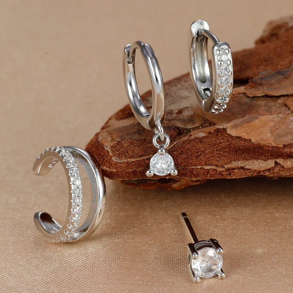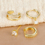 The Amira Earring Set is the perfect mix of sleek huggie hoops, sparkling studs, and a delicate ear cuff.
