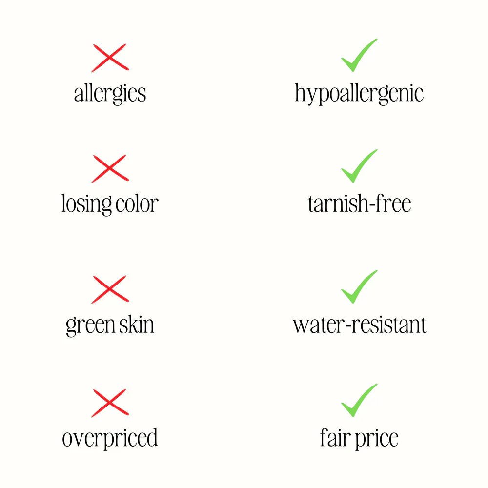 Each piece is coated in thick 18k gold using PVD — an eco-friendly method that ensures long-lasting shine.